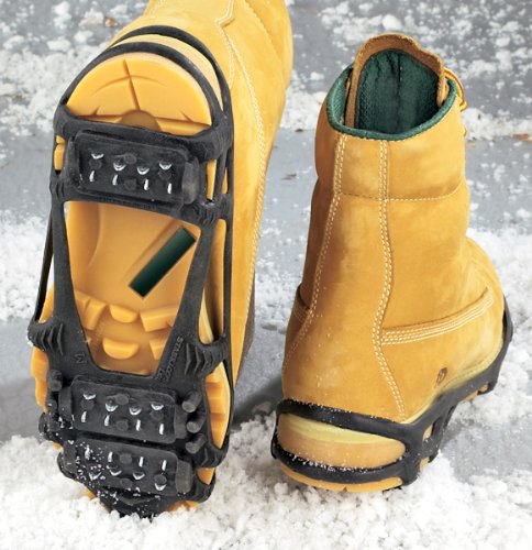 STABILicers Lite Ice Cleats offer in-step safety. Cleated snowtires for your feet! Top traction without the slip-ups. Rubber-like overshoe design is tough as nails. Metal non-slip cleats "bite" ice for sure-grip traction. Easily fit over any shoe or boot. Each weighs approx. 11 ozs. State Size. Mens Size: Small fits 4-7, Medium fits 7.5-10 and Large 10.5-13. Women's Size: Small fits 5-8 and Medium fits 8.5-12. Play it safe, get yours today! Stabilizers Lite Ice CleatsRead More
